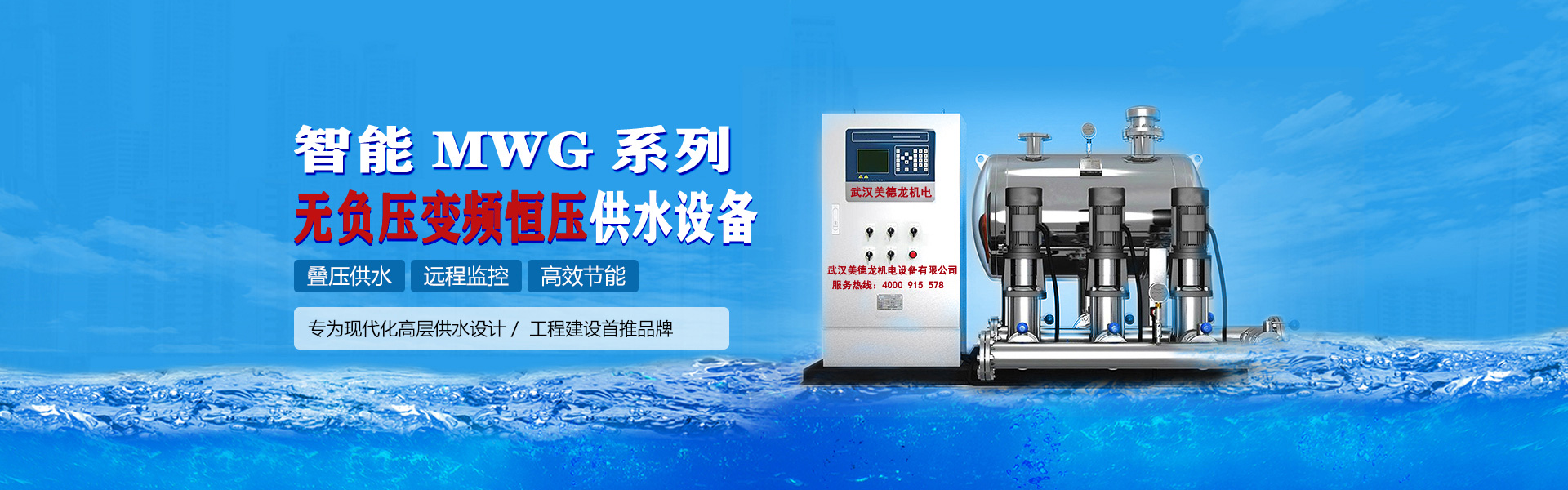武漢美德龍機(jī)電設(shè)備有限公司位于中國(guó)九省通衢的武漢市。是國(guó)內(nèi)一家集研制、開(kāi)發(fā)、生產(chǎn)、銷(xiāo)售、服務(wù)于一體的多元化企業(yè)。致力于變頻器、PLC、人機(jī)界面、變頻節(jié)能、空氣能熱泵、鍋爐、水泵機(jī)械等方面技術(shù)的開(kāi)發(fā)和應(yīng)用,匯集國(guó)內(nèi)外先進(jìn)的機(jī)電自動(dòng)化技術(shù),產(chǎn)品應(yīng)用于生活供水、熱水暖通、冷卻空調(diào)、消防、排污、普通工業(yè)、化工、重工業(yè)、市政、水利、環(huán)保、污水處理、輕工機(jī)械、抽取地下水、純水、反滲透、船用、泳池、農(nóng)業(yè)、漁業(yè)、家庭及園藝用途等領(lǐng)域 ,公司主導(dǎo)產(chǎn)品包括:變頻泵、變頻恒壓供水設(shè)備、無(wú)負(fù)壓供水設(shè)備、變頻恒壓供水控制器、液位控制器、真空引水罐、氣壓罐、集(分)水器、定壓補(bǔ)水裝置、真空脫氣機(jī)、電子水處理儀、全程水處理器、旁流水處理器、次氯酸鈉發(fā)生器、二氧化氯發(fā)生器、紫外線(xiàn)殺菌消毒器、過(guò)濾沙缸、智能箱式泵站、不銹鋼水箱、智能液位(遠(yuǎn)程)監(jiān)測(cè)儀、污水提升裝置、消防給水設(shè)備、控制柜、各類(lèi)水泵、空氣能熱水器、電輔加熱器、及熱水系統(tǒng)工程。