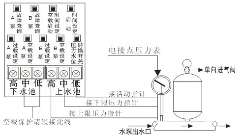 b、上水池高、中、低控制線與電接點壓力表指針接駁 應(yīng)是