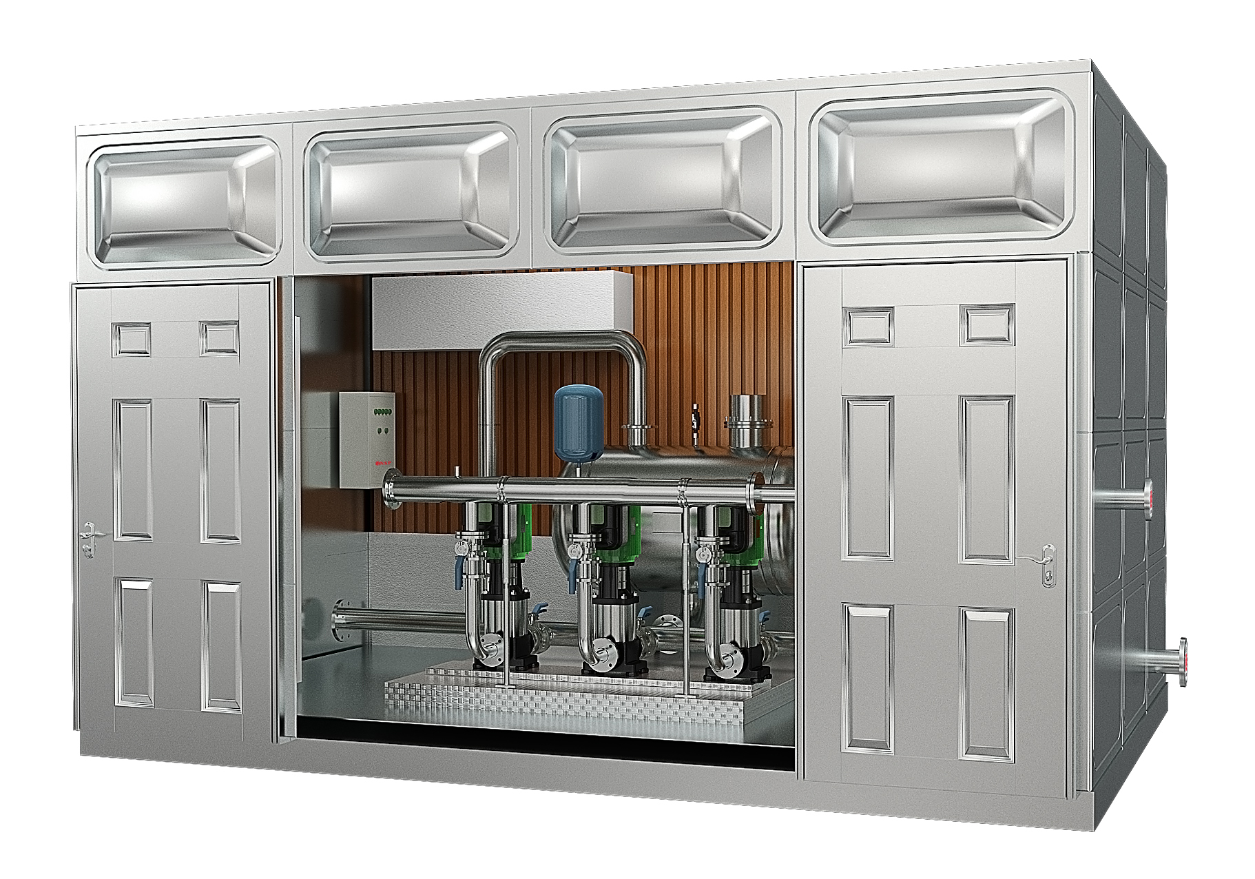 一、泵站介紹針對傳統(tǒng)二次供水泵房用地需求大,安裝費時,需長時間斷水等問題,美德龍公司推出集加壓、水質(zhì)監(jiān)測、安防報警、紫外線消毒、遠程監(jiān)控等諸多功能于一體的全新一代一體化智慧泵站。泵站具有環(huán)保、低噪、恒溫、抗震、防風(fēng)、耐腐蝕等特性,并將傳統(tǒng)泵房與現(xiàn)代大數(shù)據(jù)智慧互聯(lián)完美融合、實現(xiàn)模塊化定制、精細化生產(chǎn)、標(biāo)準化安裝,真正實現(xiàn)泵站的革命性的改變。