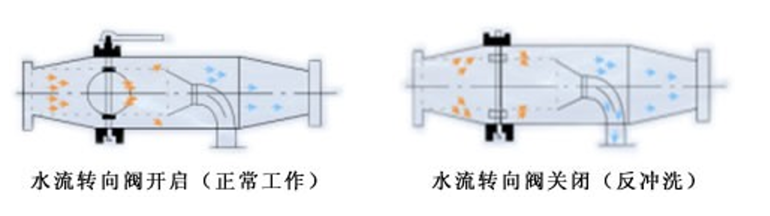 當(dāng)過(guò)濾器的壓差達(dá)到預(yù)設(shè)值時(shí),將開(kāi)始自動(dòng)清洗過(guò)程,此間凈水供應(yīng)不斷流,清洗閥打開(kāi),清洗室及吸污器內(nèi)水壓大幅度下降,通過(guò)濾筒與吸污管的壓力差,吸污管與清洗室之間通過(guò)吸嘴產(chǎn)生一個(gè)吸力,形成一個(gè)吸污過(guò)程。同時(shí),電力馬達(dá)帶動(dòng)吸污管沿軸向做螺旋運(yùn)動(dòng)。吸污器軸向運(yùn)動(dòng)與旋轉(zhuǎn)運(yùn)動(dòng)的結(jié)合將整個(gè)濾網(wǎng)內(nèi)表面完全清洗干凈。整個(gè)沖洗過(guò)程只需數(shù)十秒鐘。排污閥在清洗結(jié)束時(shí)關(guān)閉。過(guò)濾器開(kāi)始準(zhǔn)備下一個(gè)沖洗周期。