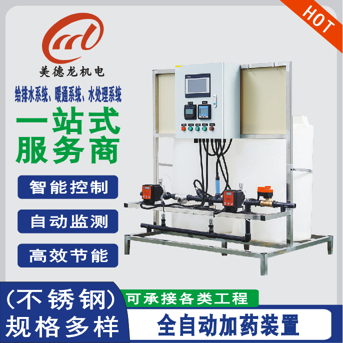 在電力、石油、化工、冶金工業(yè)、環(huán)境工程、水處理等領(lǐng)域中常需要將某種液體連續(xù)自動(dòng)地注入到另一種液體中成為一種混 合液,或者使加入的藥劑與液體中存在的某種組份發(fā)生化學(xué)反應(yīng),以達(dá)到預(yù)期的工藝要求。為達(dá)到最佳效果,在工況變化的情況下,對(duì)所加化學(xué)藥劑量自動(dòng)跟蹤調(diào)節(jié) 控制加藥速度,因此在這種裝置中,MZJY全自動(dòng)加藥設(shè)備結(jié)構(gòu)簡(jiǎn)單、安裝方便。主要由計(jì)量箱(藥劑貯罐)、計(jì)量泵(加藥泵)、自動(dòng)控制系統(tǒng)、連接管路 等組成。除部分加藥管路、取樣管路和加藥濃度檢測(cè)儀表外,這些設(shè)備一般都集中安裝在一個(gè)加藥間內(nèi),自動(dòng)加藥裝置將計(jì)量箱、計(jì)量泵、自動(dòng)控制系統(tǒng)一體化,即 安裝在一個(gè)底座上。制造廠(chǎng)完成設(shè)備購(gòu)置、制造、組裝、調(diào)試、試運(yùn)行,用戶(hù)只需將智能型全自動(dòng)加藥裝置安放在加藥間后,將計(jì)量泵出口與加藥管路、計(jì)量箱進(jìn)出口與進(jìn)水管等連接好,并將控制柜電源和檢測(cè)儀表信號(hào)送到控制柜就可以啟動(dòng)、投入運(yùn)行。這樣可以大大減少現(xiàn)場(chǎng)施工工作量,避免了中間環(huán)節(jié)繁多引出的差錯(cuò),有效地保證工期和工程質(zhì)量,減少用戶(hù)的麻煩和損失。